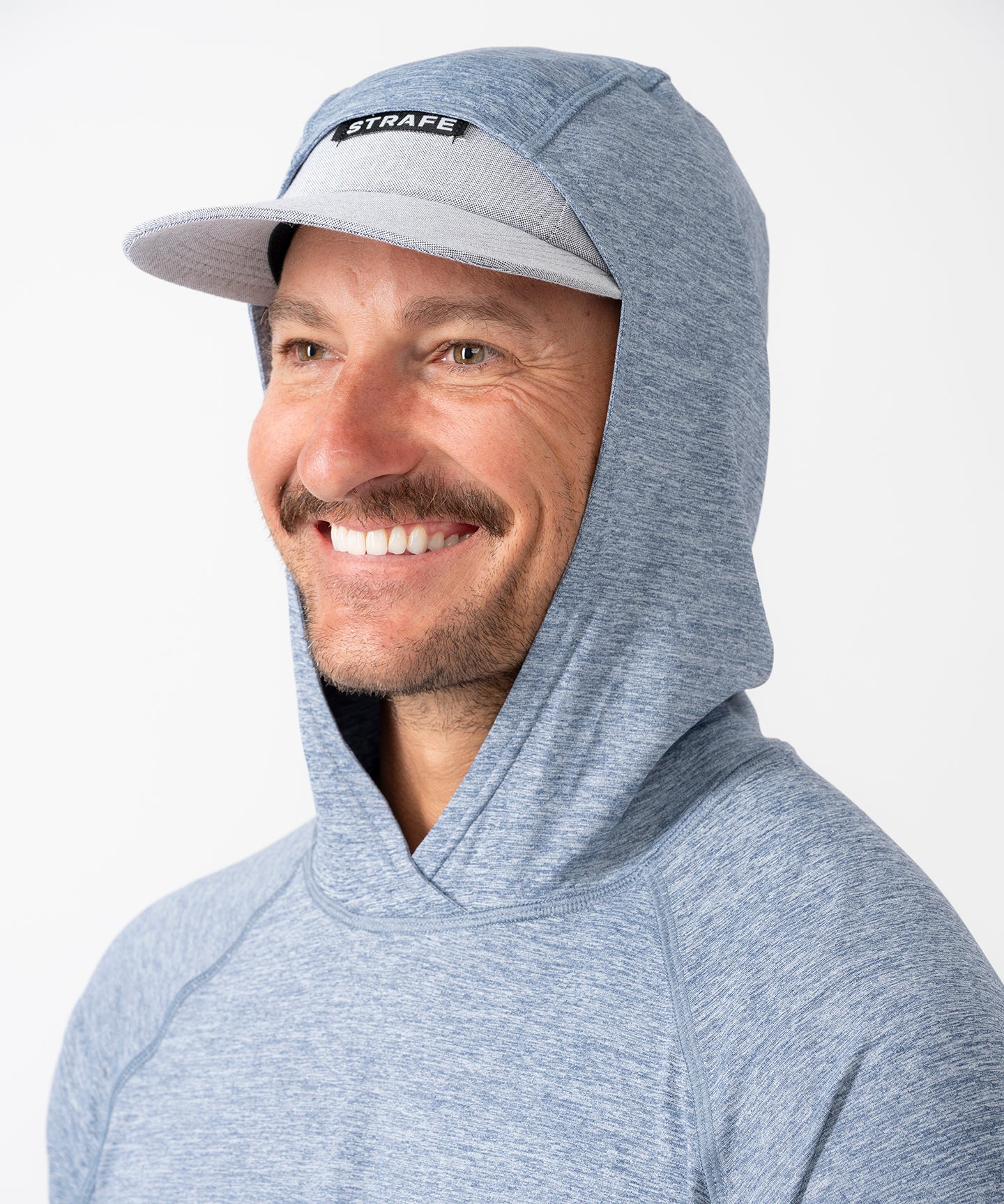 • Casual fit hood with overlap at front